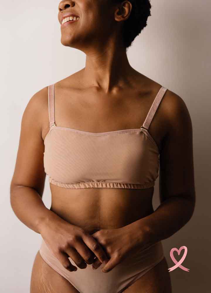 La lingerie post-mastectomie : découvrez la brassière Camilla rose poudré et son insert pour prothèse mammaire en mousse ou en silicone.