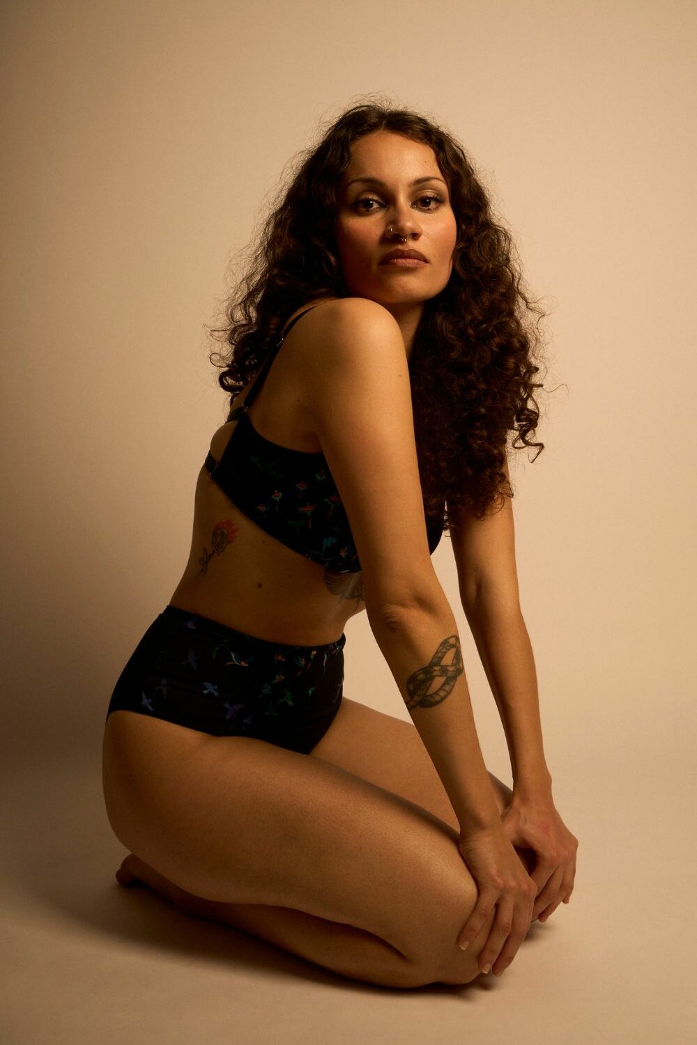 Elle s’accorde parfaitement avec la brassière Camilla ou encore la bralette Odette, et le crop top Léane, motif Ara, pour créer des ensembles graphiques