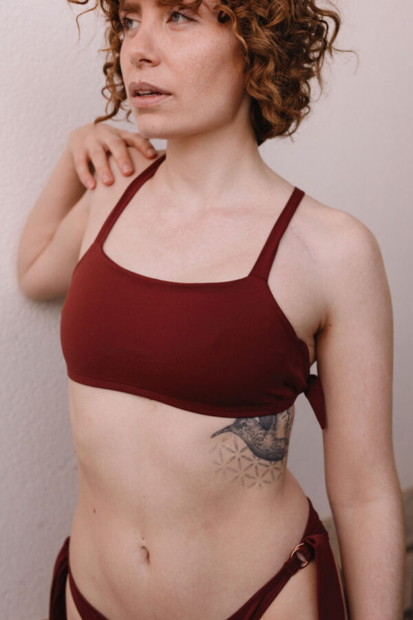 À porter de jour comme de nuit. Pour bronzer ou explorer. Maison Finou vous propose des hauts de maillot de bain deux pièces s’adaptant à toutes les morphologies car créer une ligne de maillot de bain inclusive est au cœur des préoccupations de Maison Finou. Des coupes et patronages haut gamme ont été mis au point pour fabriquer ses hauts de maillots de bain allant de la taille 32 au 52, du bonnet A au bonnet G. Une attention particulière est portée au maintien et au confort de ses maillots notamment pour les poitrines généreuses. Comme toutes les pièces de Maison Finou, ils ont été imaginés et fabriqués à Paris. Vous retrouverez l’iconique de la maison, le haut Alison avec ses lacets noués de différentes façons, parfait pour exprimer votre créativité ou si vous aimez changer de style d'un jour à l'autre. Le crop top de maillot de bain Léa, le sportif de l’été qui vous suit partout. La matière française bistretch légèrement sculptante donne la sensation de seconde peau et affine la silhouette. Elle offre également une protection UV50+. Et parce toutes les lignes des corps sont belles et uniques, Maison Finou réalise également des maillots de bain sur mesure pour convenir à vraiment toutes les morphologies. Il est donc tout à fait possible de nous demander de réaliser un haut de maillot de bain avec deux tailles de bonnets différents. Se séduire chaque jour et se sentir libre de ses mouvements, c’est la plus belle manière de rayonner !