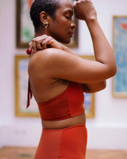 Vous pouvez porter ce tanga avec la bralette Claire, ou encore avec nos brassières Romane & Camilla de la même matière.